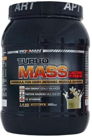 Гейнер IronMan Turbo Mass без лактозы, ваниль 1400 г IRONMAN 2739435 .