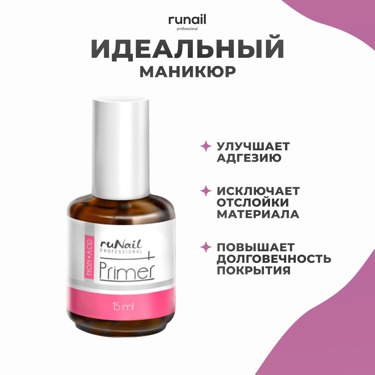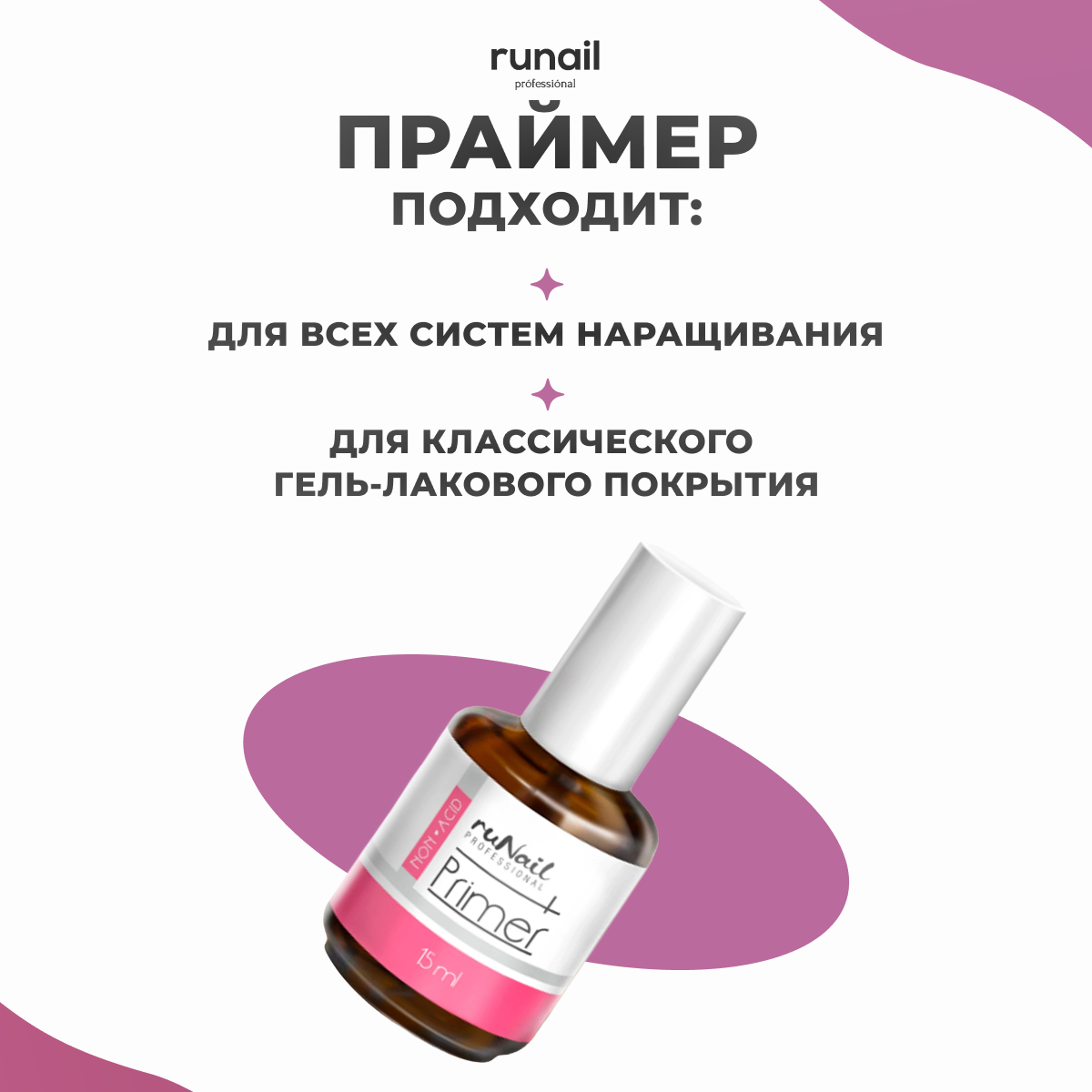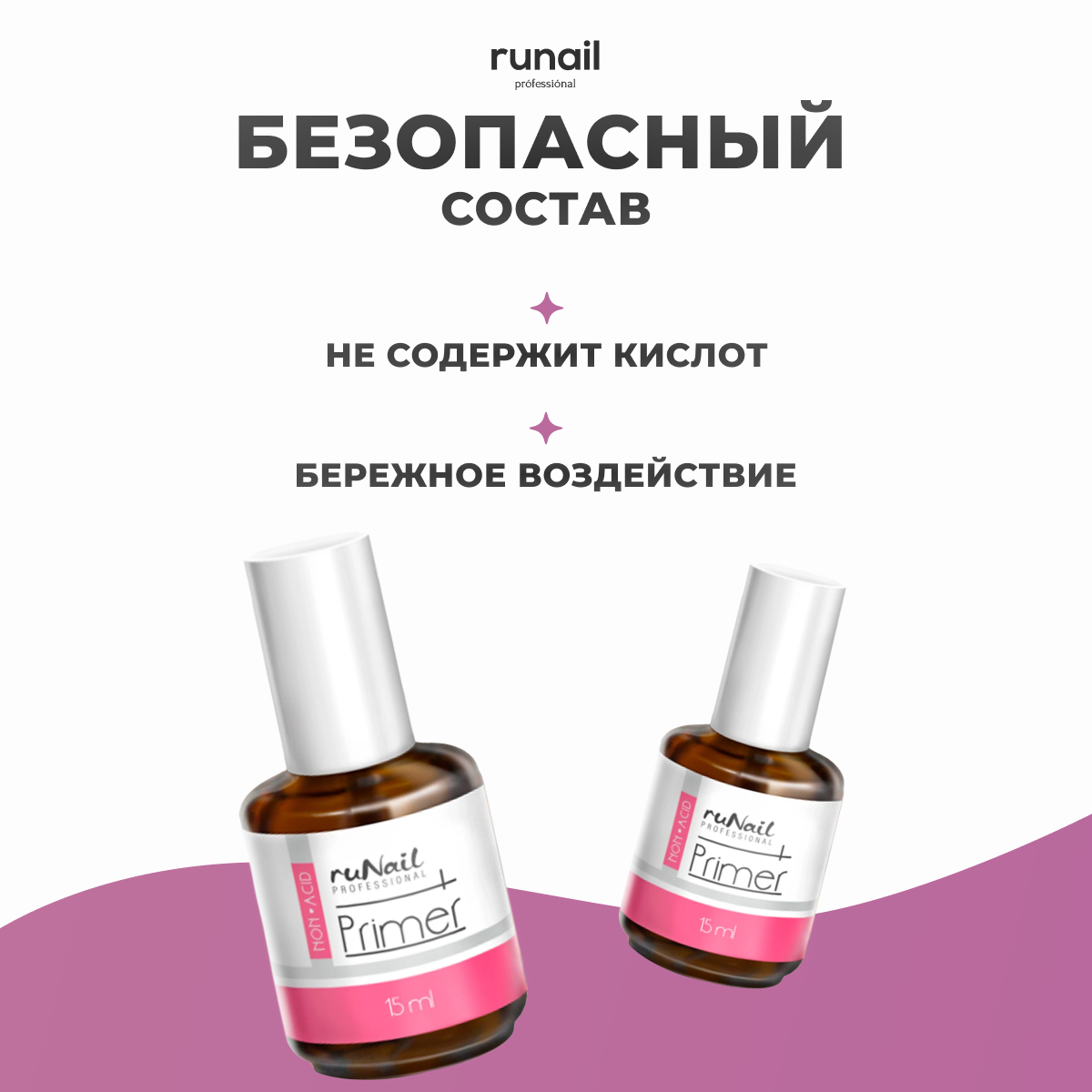 Runail Professional праймер для гель лака кислотный / бескислотный 15 мл / Рунейл праймер для ногтей