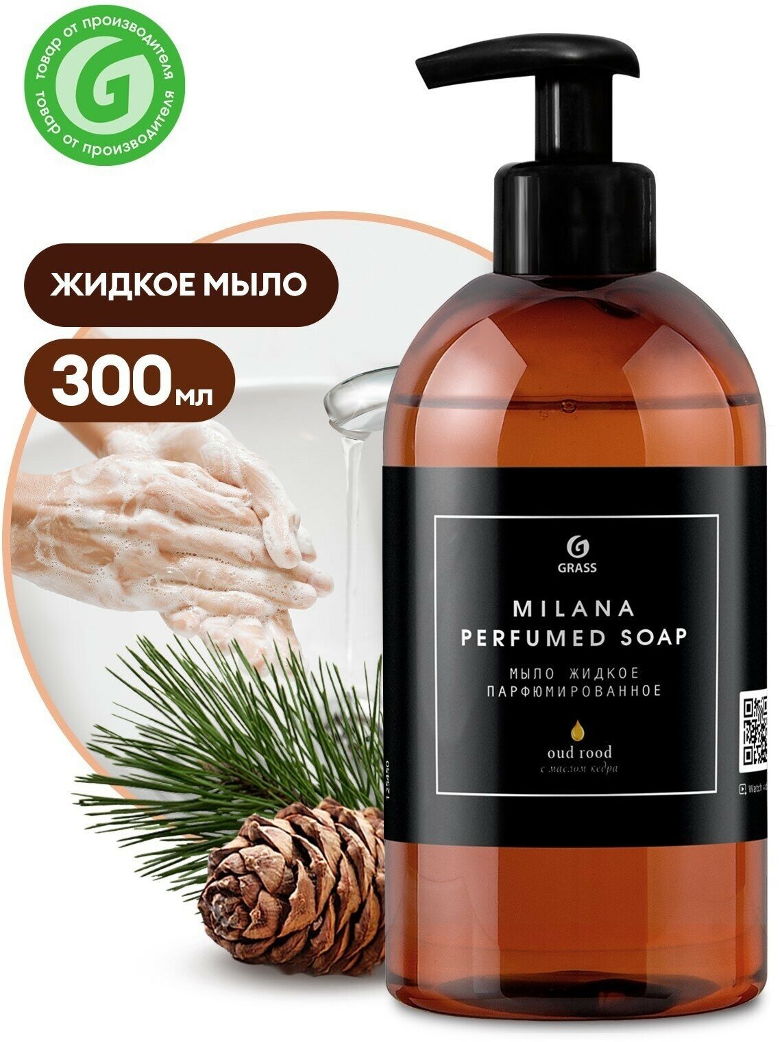 Мыло жидкое увлажняющее парфюмированное Grass Milana Oud Rood для рук и тела гипоаллергенное с дозатором 300мл