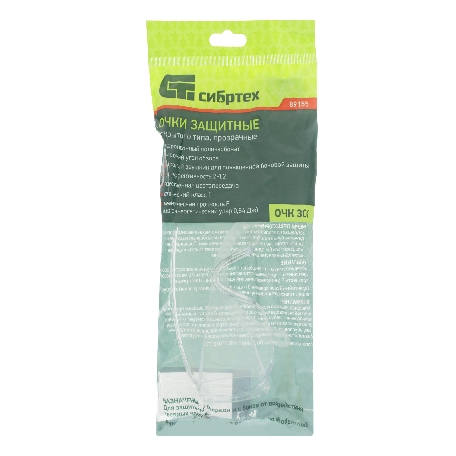 Очки защитные Сибртех 89155 открытого типа, прозрачные, ударопрочный поликарбонат