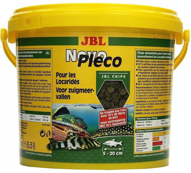 Купить JBL NovoPleco - Основной корм для кольчужных сомов, тонущие чипсы, 5,5 л (2900 г)