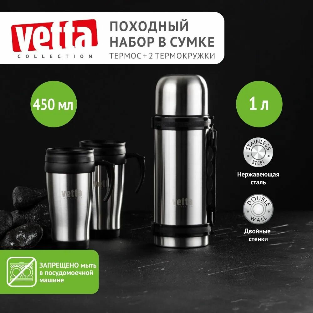 Купить VETTA Набор походный (термос 1л + 2 термос-кружки 450мл) в сумке