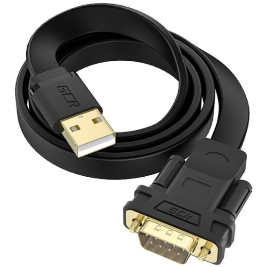 GCR Конвертер-переходник 1.5m плоский, черный, USB AM / DB9 RS-232 PRO, чипсет PL2303RA