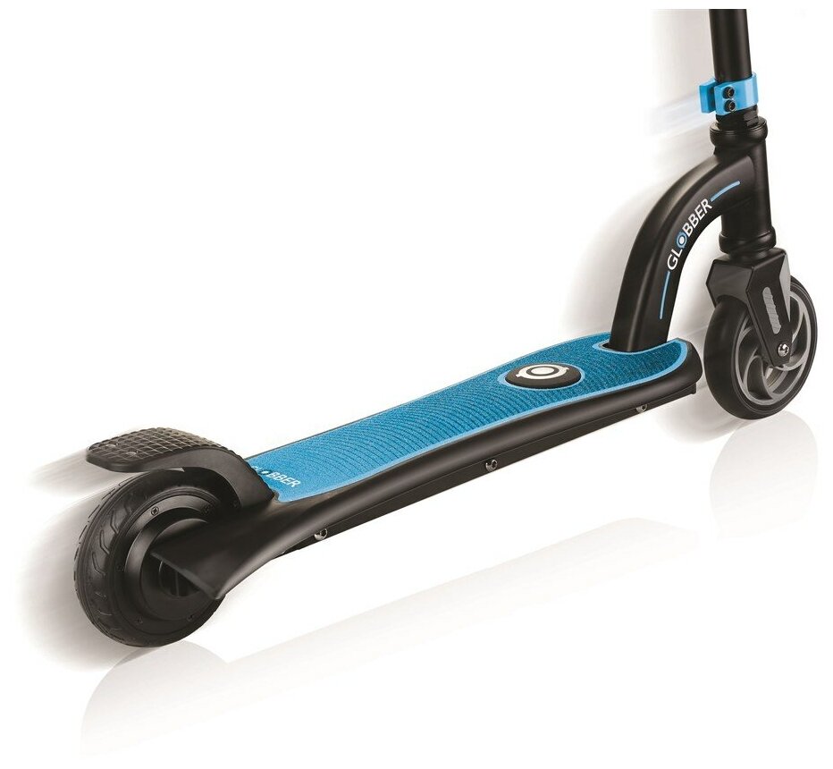 Детский 2-колесный городской самокат GLOBBER One K E-motion 10, черный/голубой