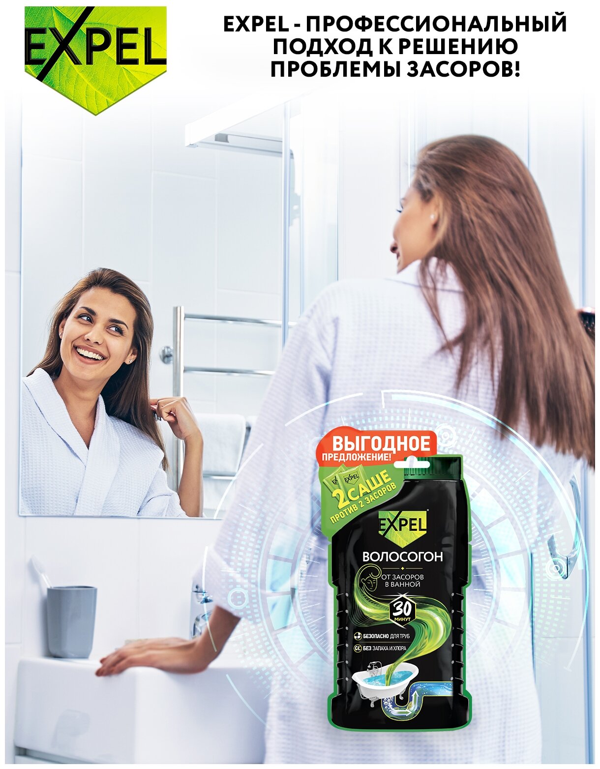 Средство для устранения засоров от волос Expel, 2 саше по 50 г 2909679