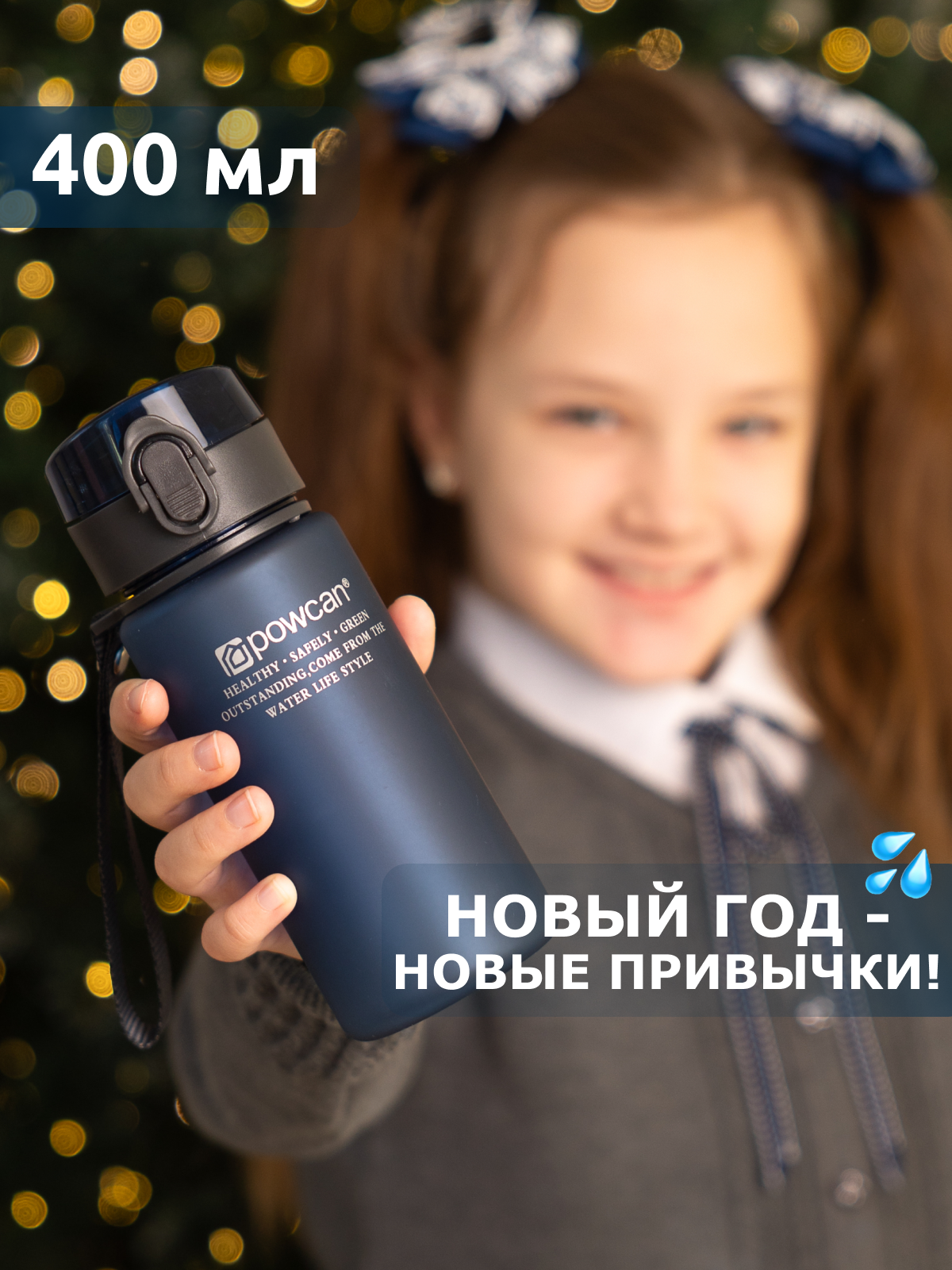 Бутылка для воды детская в школу POWCAN - белая, 400 мл. матовая, бутылка для воды спортивная