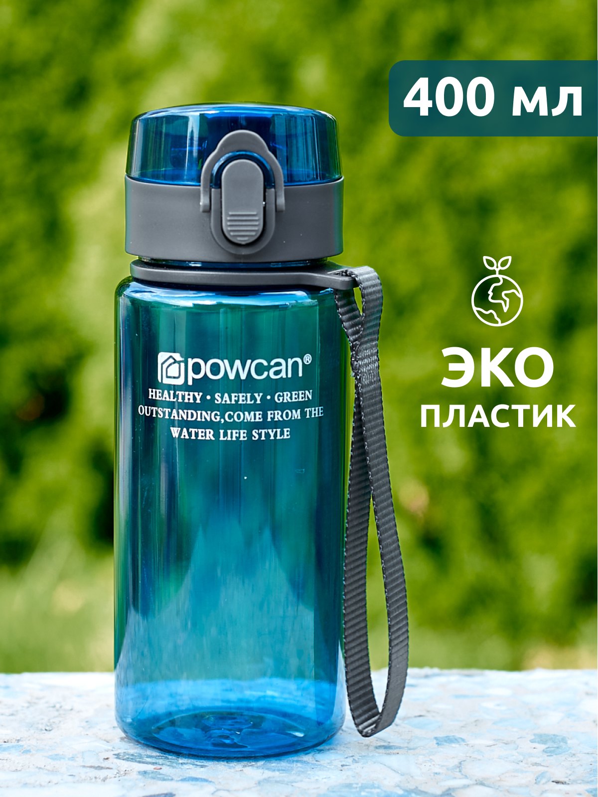 Купить Бутылка для воды POWCAN - темно-синяя, 400 мл. глянцевая