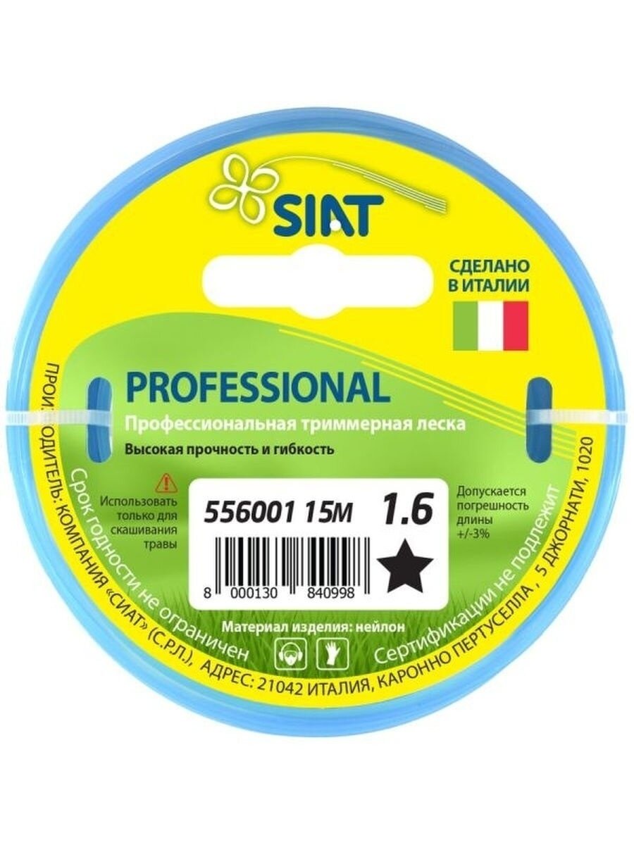 Леска для триммера SIAT Professional 1.6мм х15м, сечение звезда