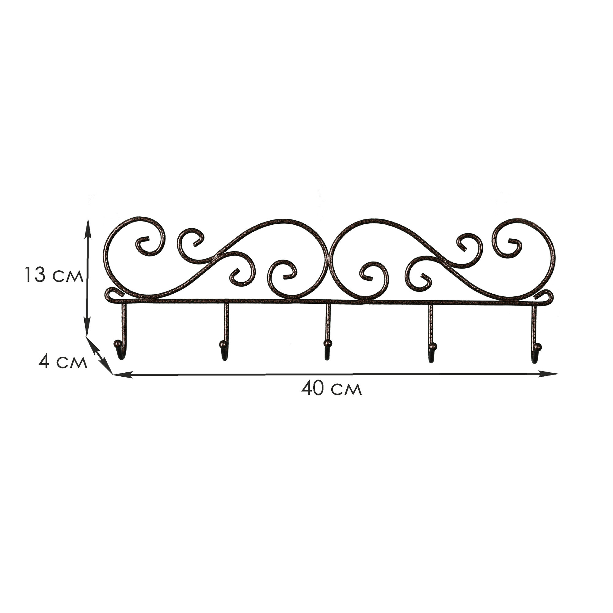Вешалка металлическая 5 крючков 40,2х4,2х13 см "Кружева-5" медный антик ВН 276 М (ЗМИ)