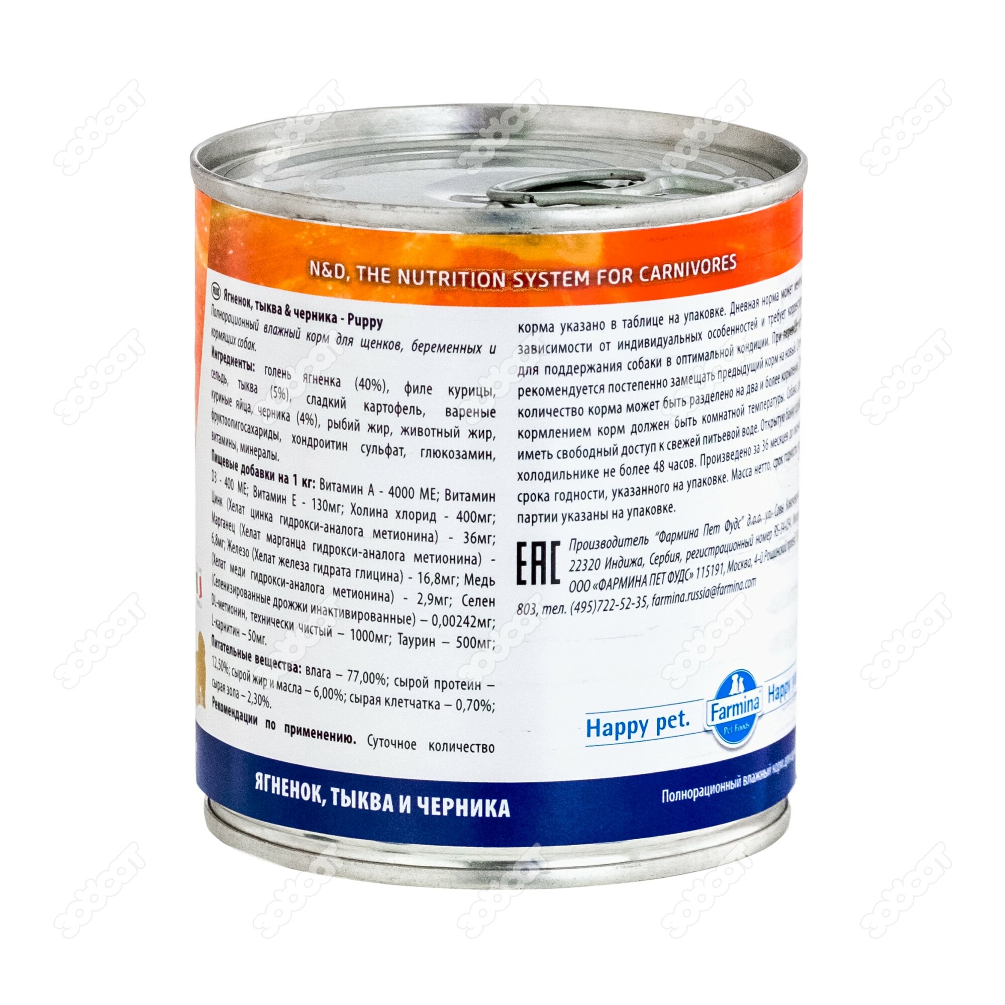 Корм Farmina N&D PUMPKIN, Lamb & Blueberry Puppy (консерв.) для щенков, ягнёнок с тыквой и черникой, 285 г x 6 шт