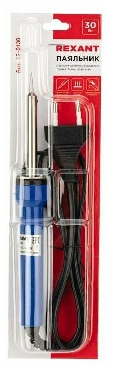 Паяльник REXANT 12-0130, 30 Вт синий/серый