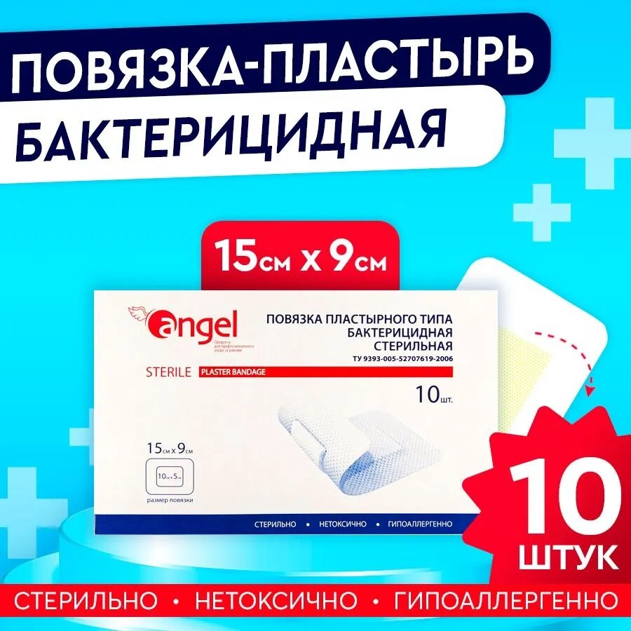 Повязки раневые Angel бактерицидные, 15*9 см, 10 шт Angel 9355191 .
