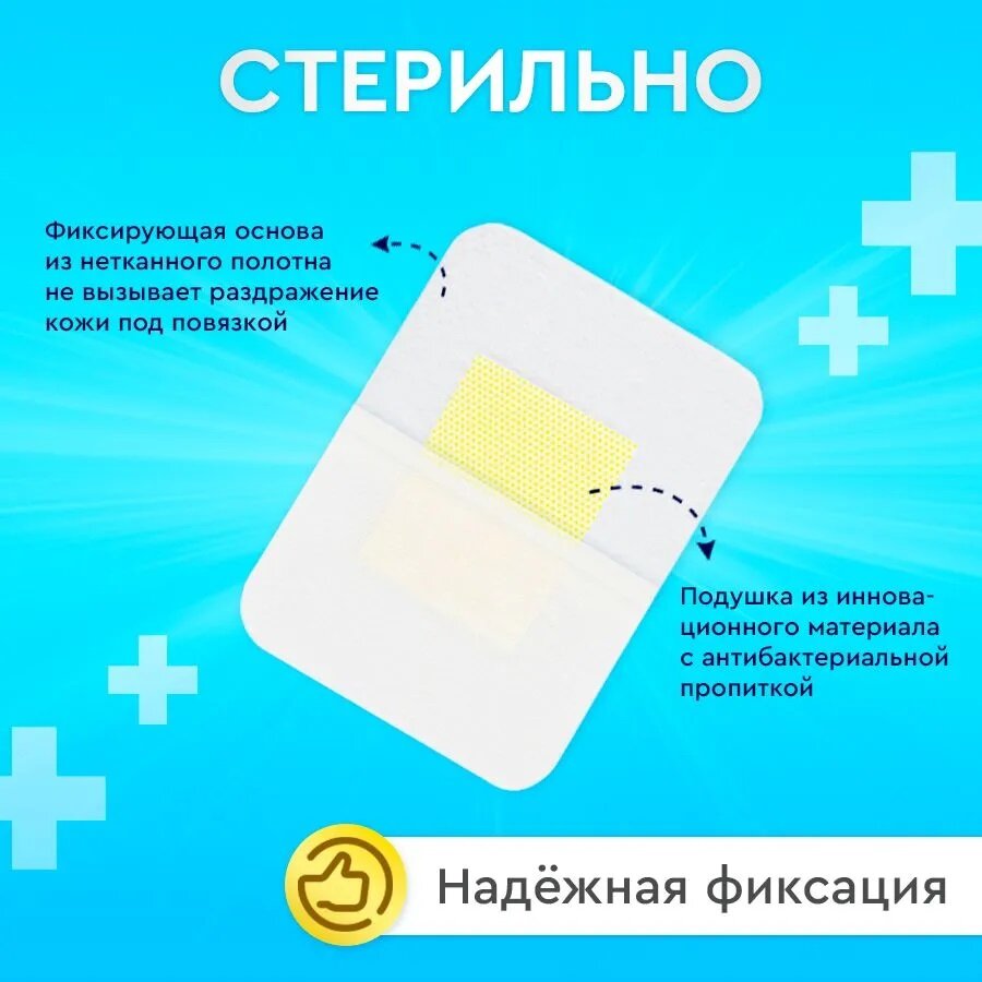 Повязка пластырного типа бактерицидная стерильная, 15 см x 9 см, 10 шт.