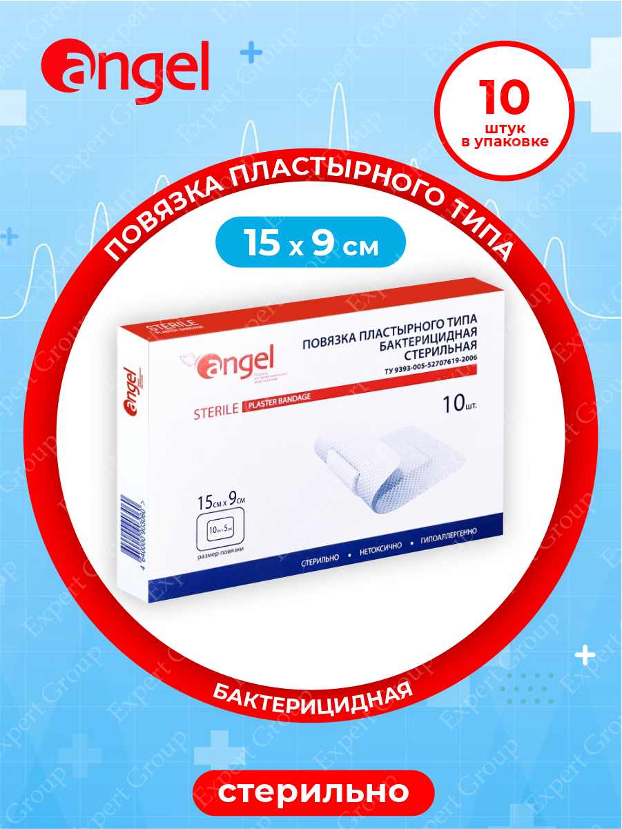 Angel / Ангел - повязка раневая бактерицидная, 15x9 см, 10 шт.