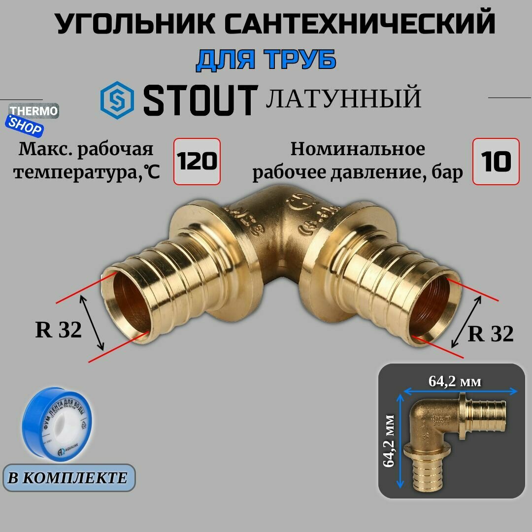 Угольник 90 STOUT SFA-0007-000032 32 для труб из сшитого полиэтилена аксиальный