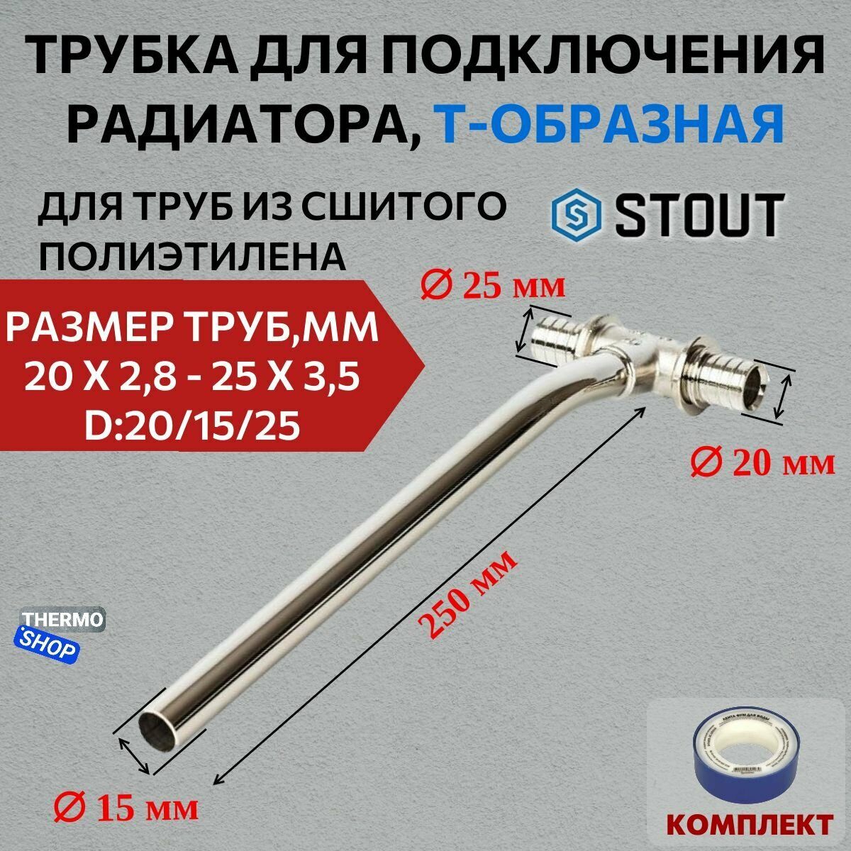 Трубка для подключения радиатора T-образная 20/250/25 (Stout)