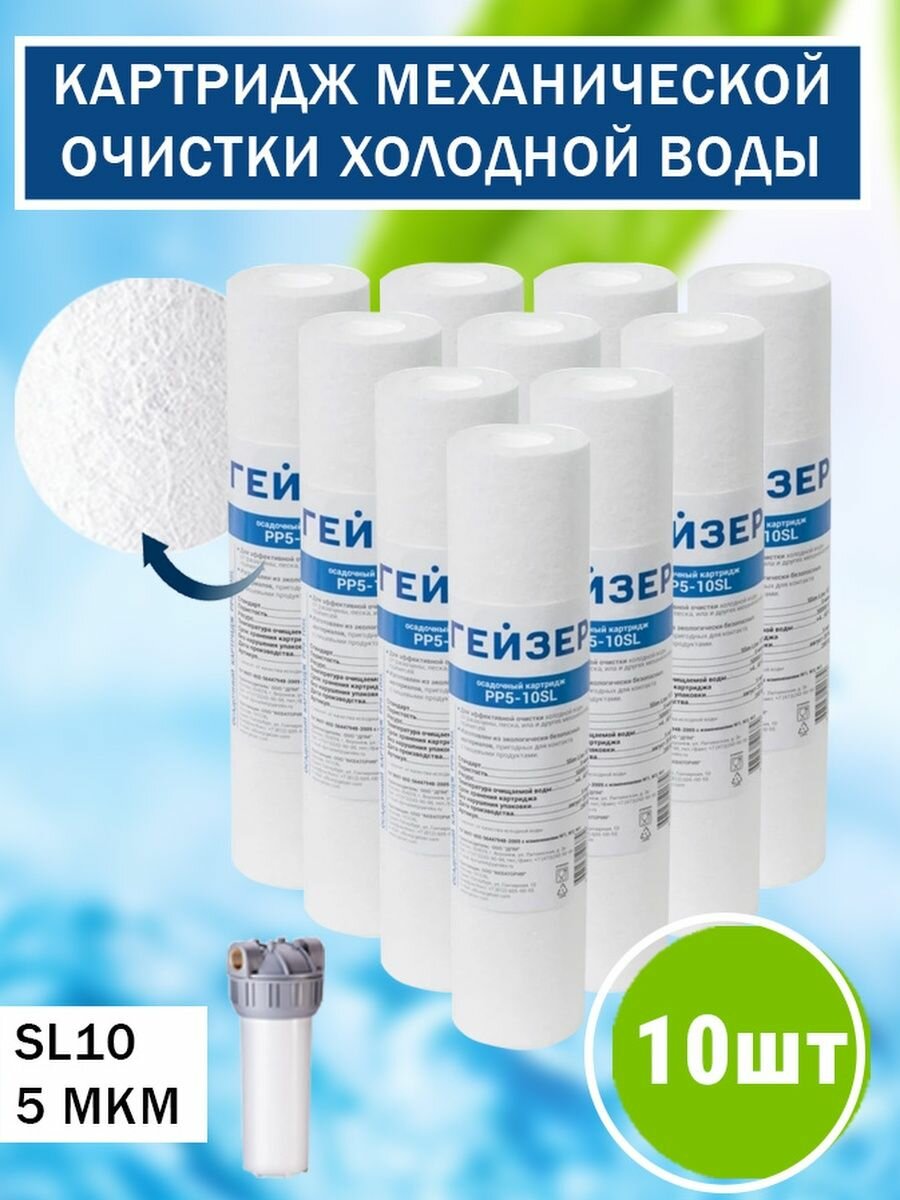 Картридж фильтра Гейзер Механика для холодной воды предфильтр полипропиленовый 5 мкм 10SL