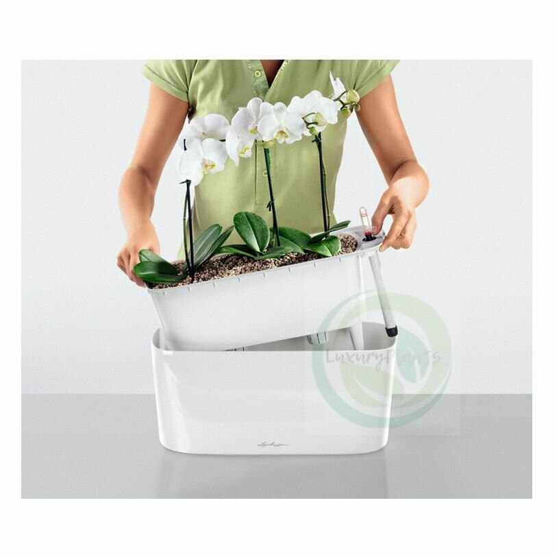 Настольное кашпо с автополивом LECHUZA Дельта 20, с субстратом в комплекте, белое, Ш15 Д40 В18 см