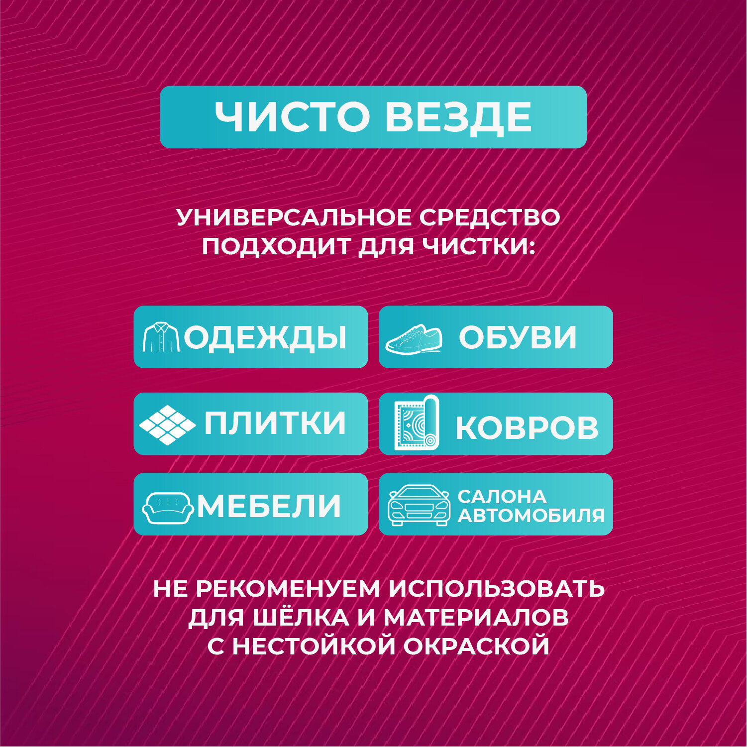 | Минусы: | Не на всех видах ткани выводит пятна |
