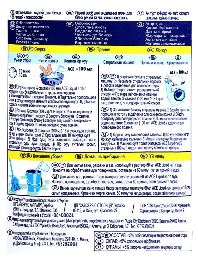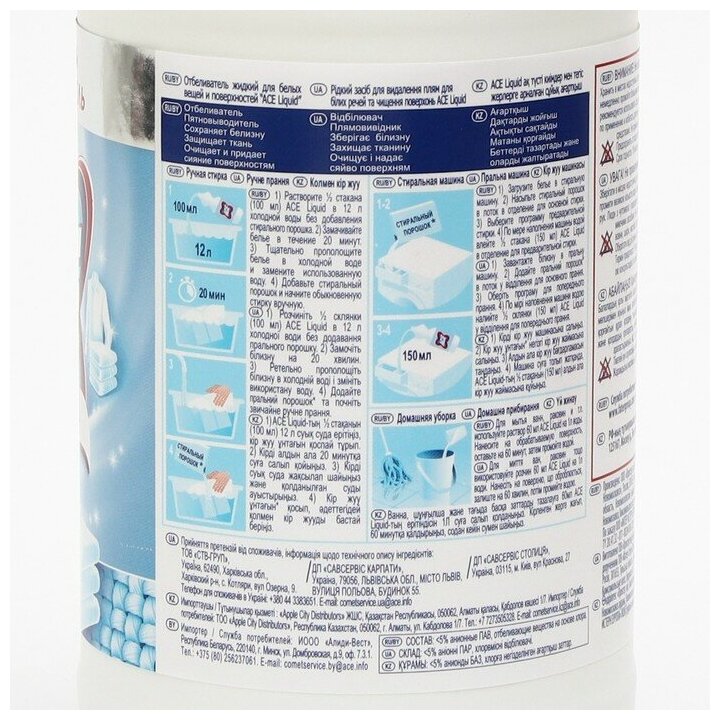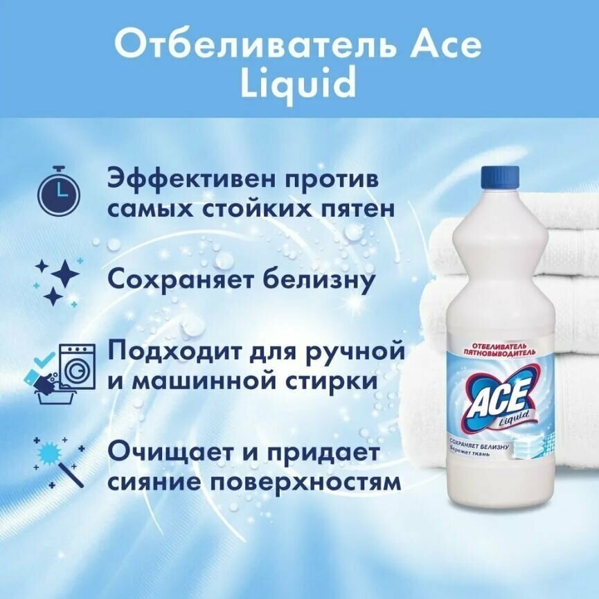 Средство для отбеливания и чистки тканей 1 л, ACE (Ас), для белой ткани интересное: