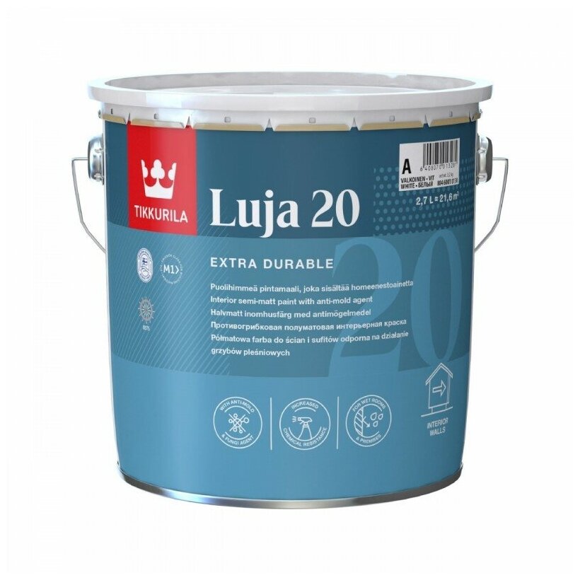 TIKKURILA LUJA EXTRA 20 краска антигрибковая для влажных помещений, полуматовая, база A (2,7л)
