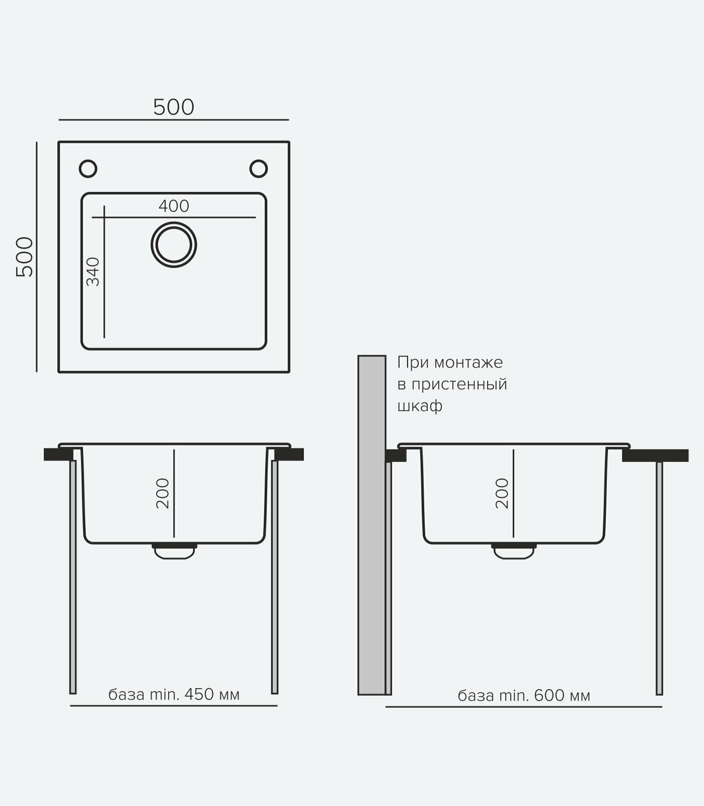 Мойка кухонная квадратная Tolero Ceramic Glass TG-500B черный (765048)