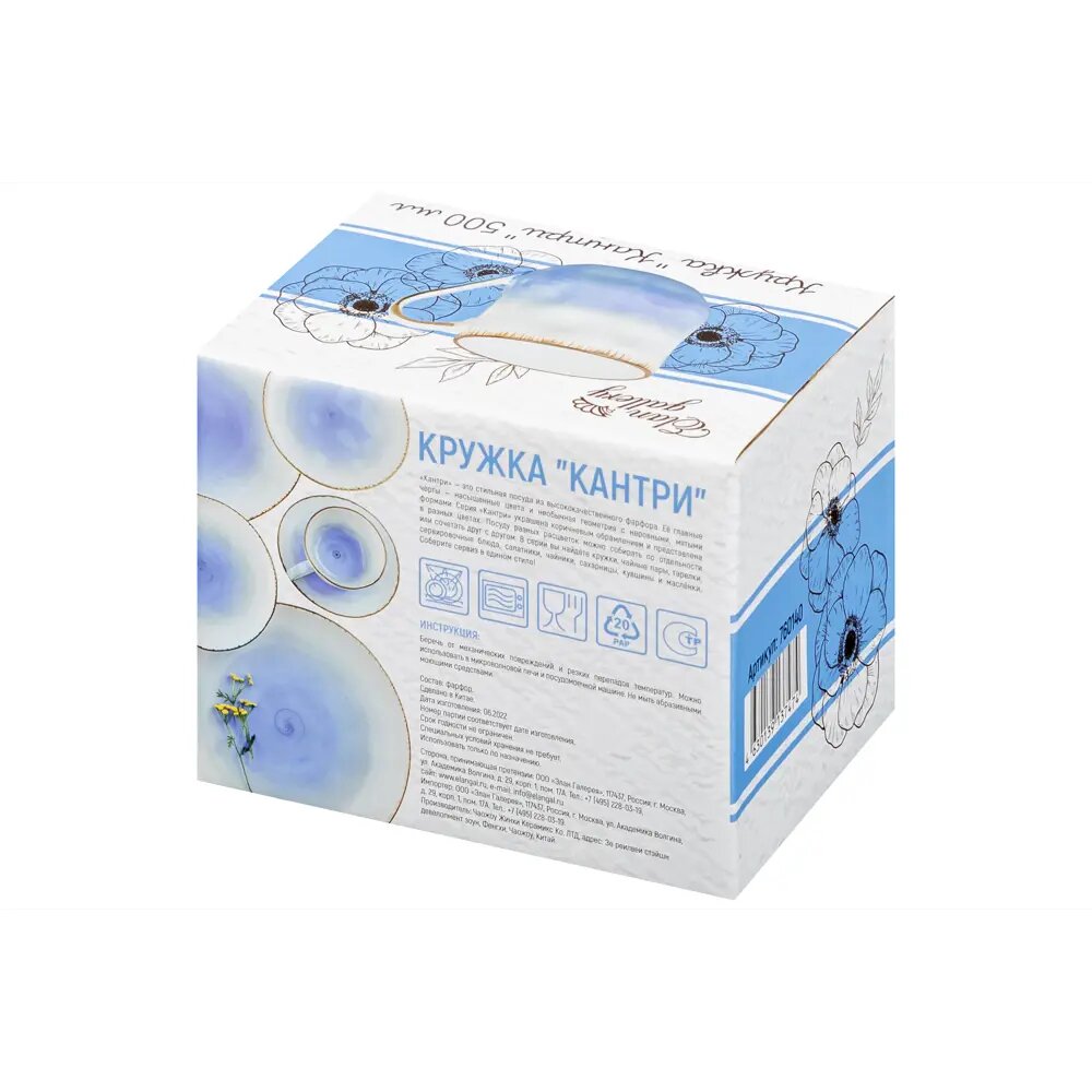 СохранитьКружка / чашка / для чая, кофе, капучино 500 мл 14х10х10 см Elan Gallery Кантри, небесно-голубая интересное: