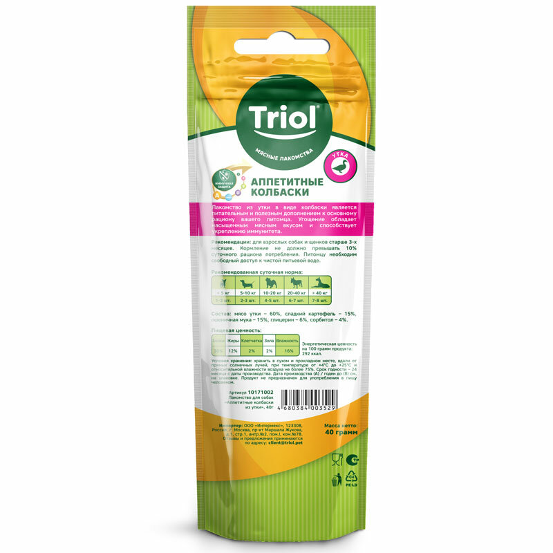 Лакомство TRIOL колбаски с уткой аппетитные для собак (40 г)