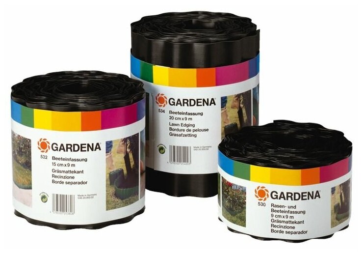 Бордюрная лента GARDENA 530-20/532-20/534-20/536-20/538-20/540-20, 9 х 9 х 0.15 м, черный