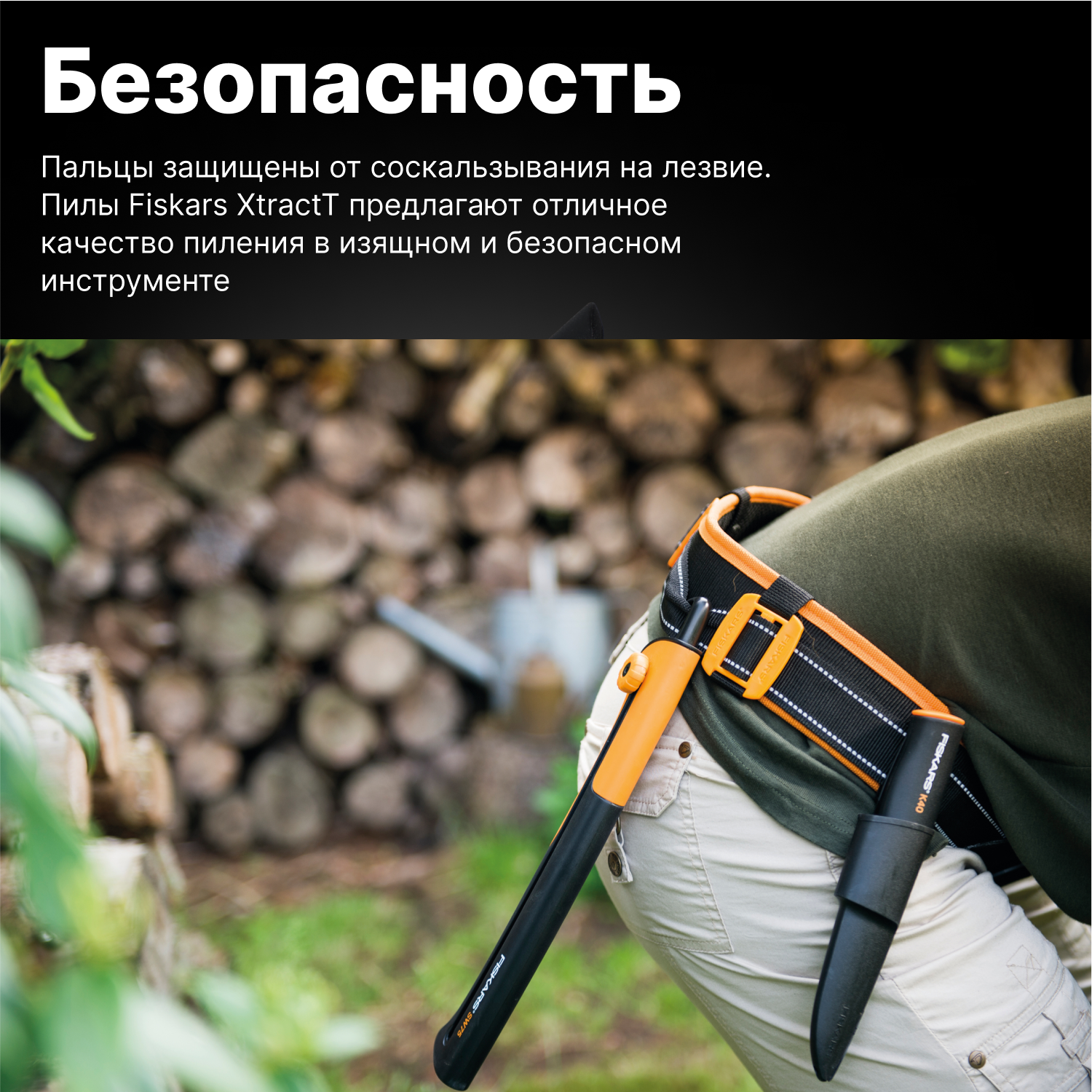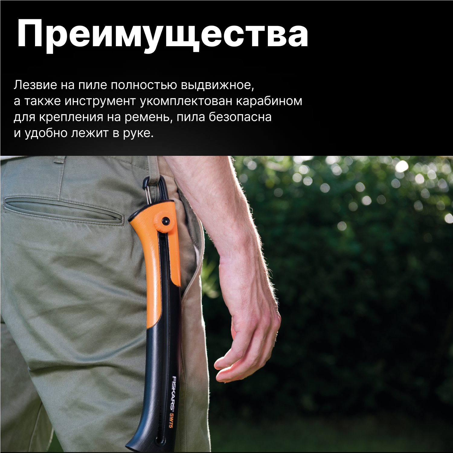 Пила садовая, строительная SW75 FISKARS Xtract, выдвижная с клипсой крепления на ремень (1000614)
