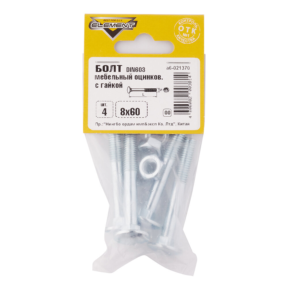 Болт мебельный оцинкованный 8х60 мм DIN 603 полусферическая головка с гайкой (4 шт.) интересное: