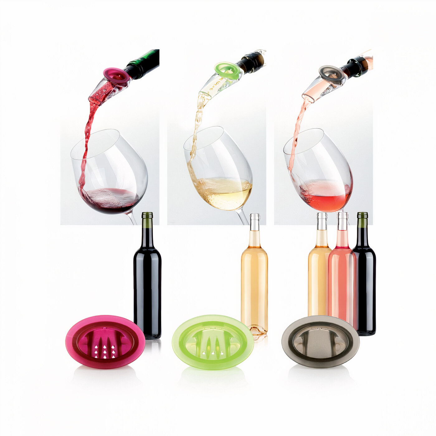 | Плюсы: | Красиво, компакто, удобно. Легко моется. Прост в использовании. Используешь сразу после открытия бутылки вина и никакого ожидания. |