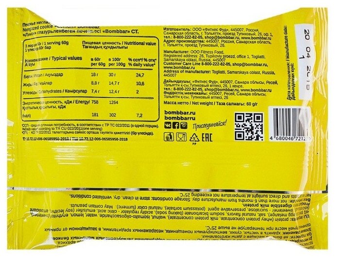 BOMBBAR протеиновое печенье со вкусом лимона 60 гр.