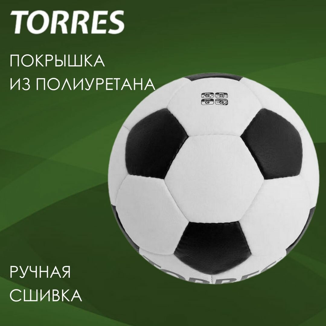 Мяч футбольный TORRES Main Stream, арт. F30185, размер 5, 32 панели PU, 4 подкладочных слоя, ручная сшивка, белый-черный