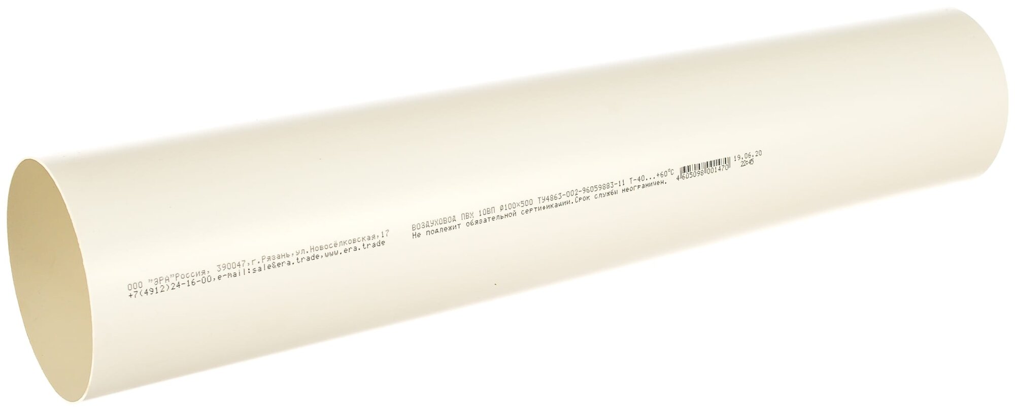 Канал круглый жесткий Era 10ВП, 0,5 м, d=100 мм, ПВХ