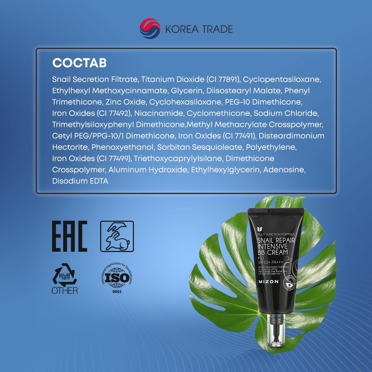 СохранитьMIZON Snail Repair Intensive BB Cream SPF50+ РА+++ #31 ББ-крем с экстрактом муцина улитки 50мл интересное: