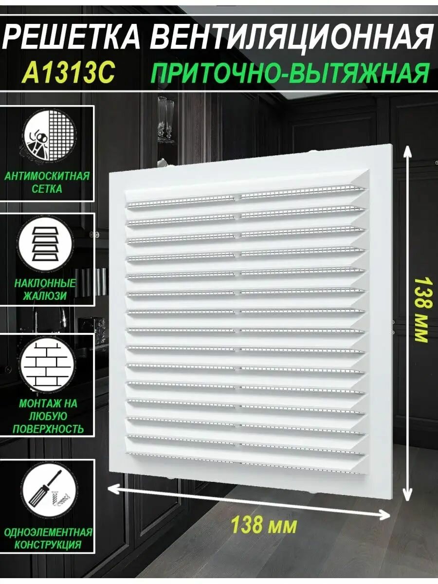 Решетка вентиляционная с москитной сеткой 138*138 1313С бел