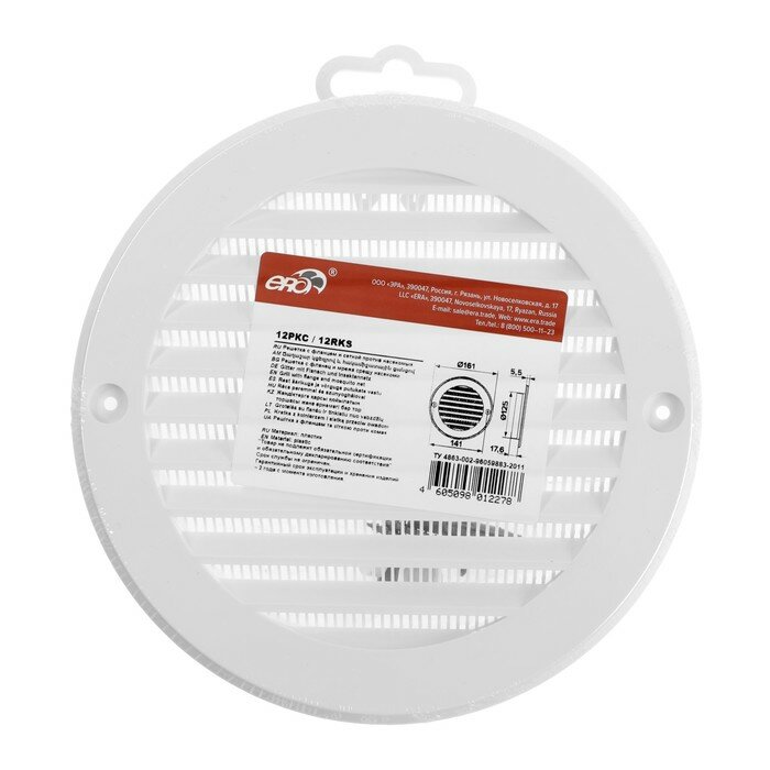 Решетка вентиляционная Era 12РКС, пластиковая, с сеткой, с фланцем D 125 мм, D 161 мм интересное: