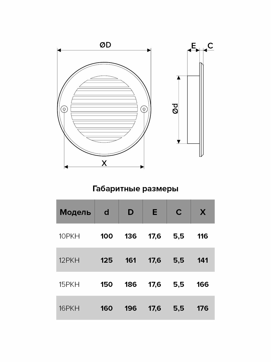 Решетка ERA 12РКН сер наружная вентиляционная круглая D150 с фланцем D125, ASA, серая