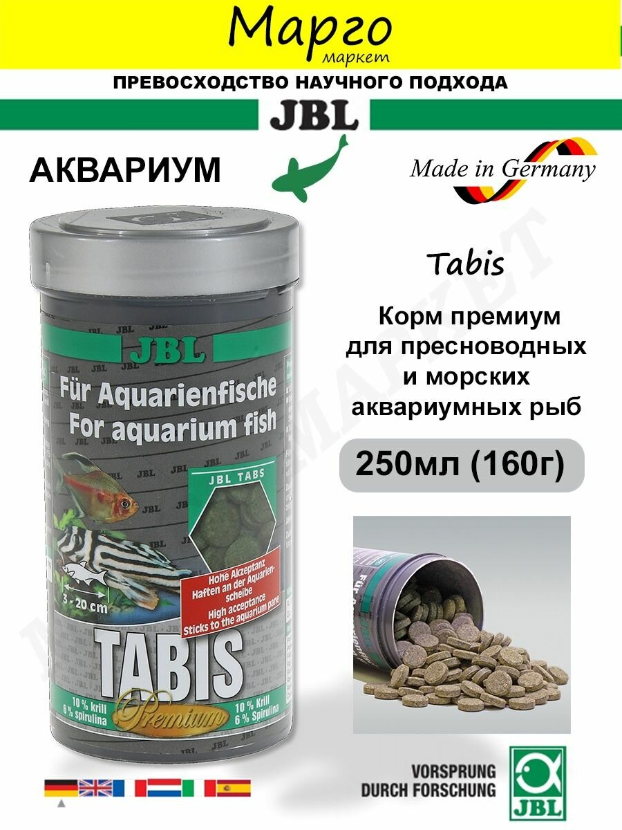 JBL Tabis - Дополнительный корм премиум-класса в форме таблеток для пресноводных и морских аквариумных рыб, 250 мл (160 г)