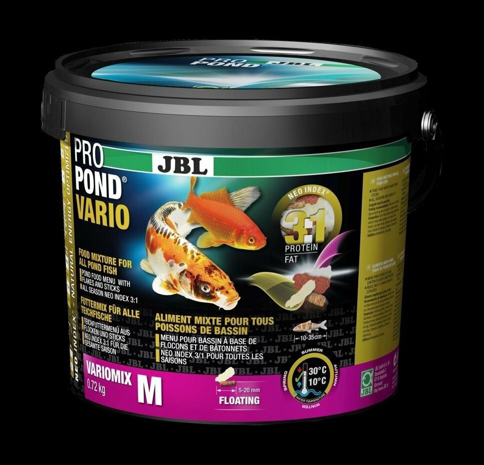 JBL ProPond Vario M - Осн корм д/прудов рыб 10-35 см, плав смесь 5-20 мм, 0,72 кг/5,5 л