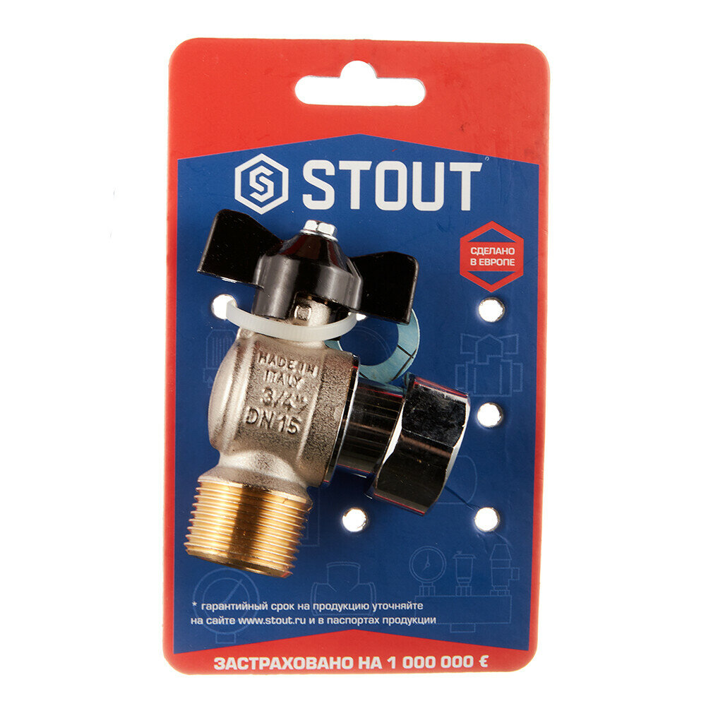 Кран шаровой Stout (SVB-0010-000020) 3/4 НР(ш) х 3/4 ВР(г) бабочка с накидной гайкой угловой