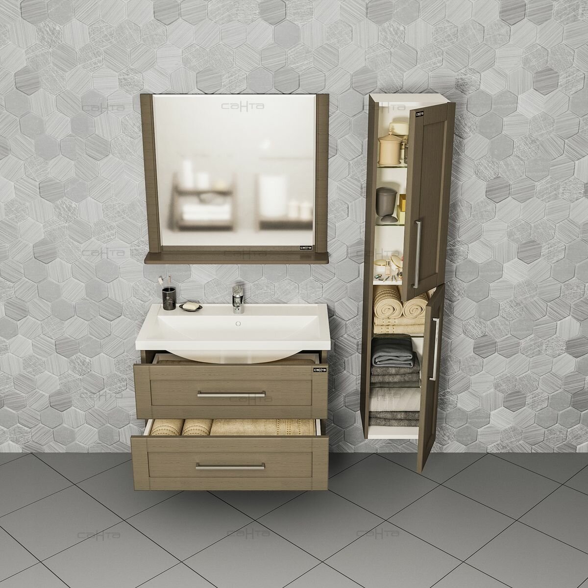 Пенал для ванной СанТа Венера 30 дуб шале графит