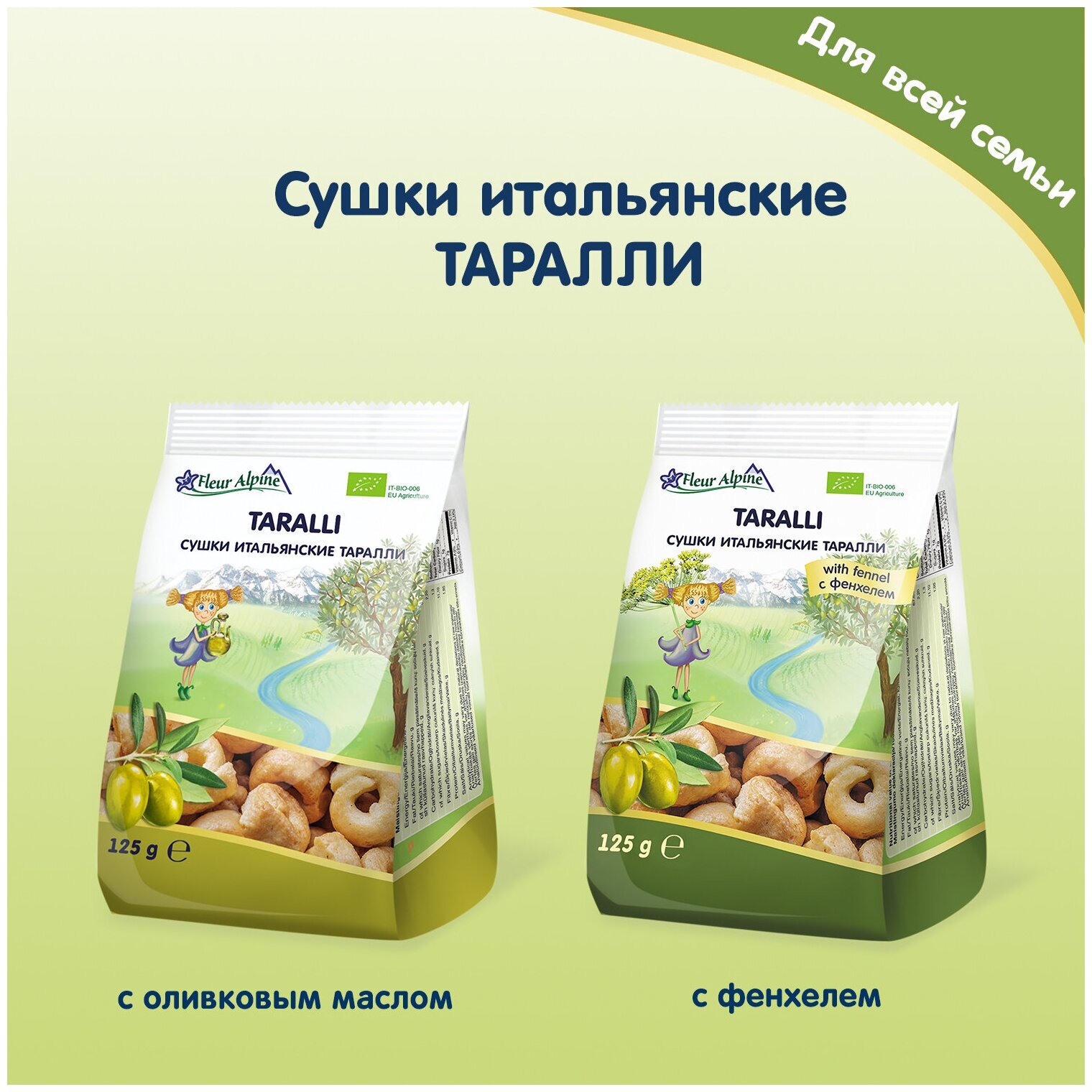 Сушки итальянские таралли С фенхелем Fleur Alpine на оливковом масле первого холодного отжима для всей семьи, 125 г интересное: