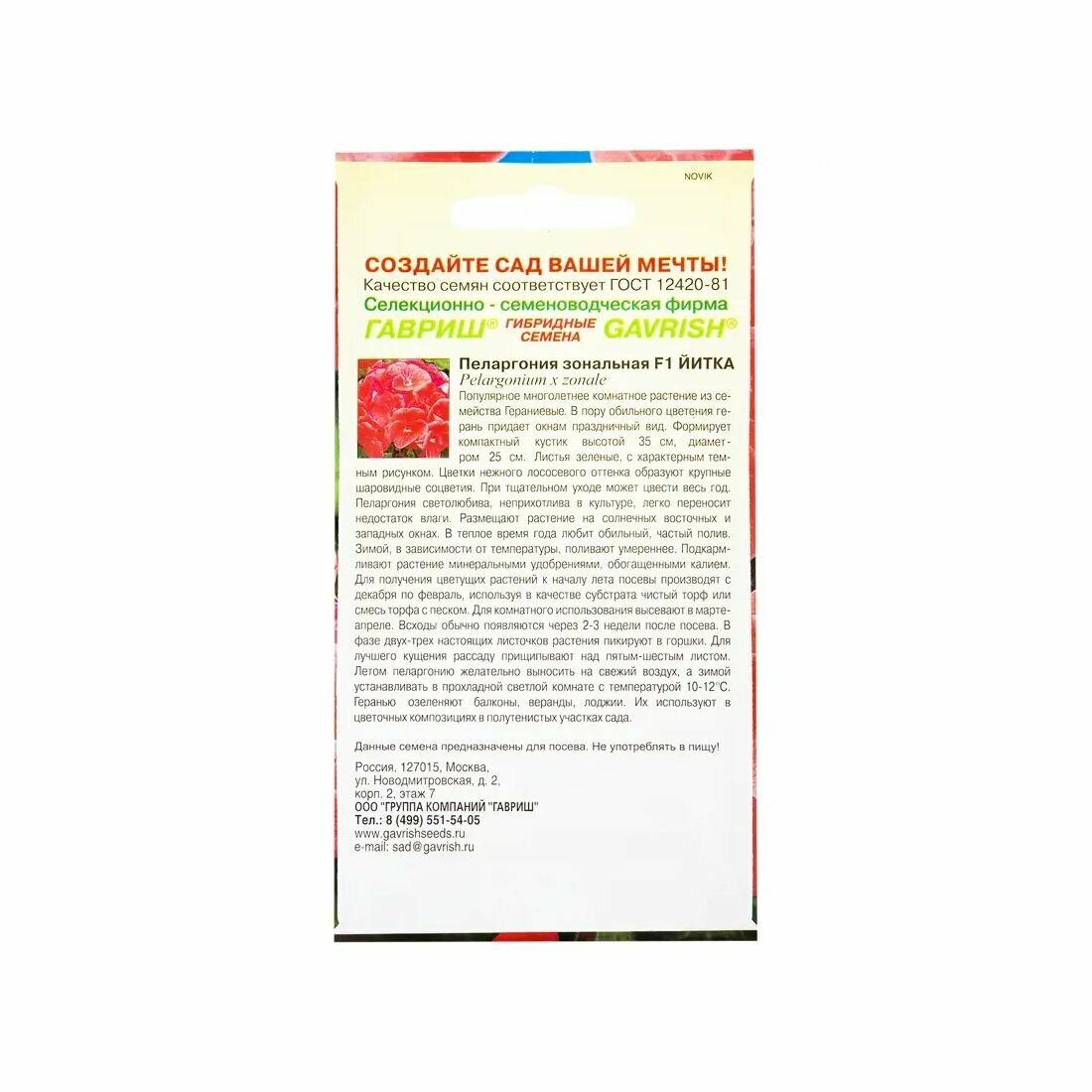 Гавриш, Пеларгония Йитка F1 зональная 4 семени