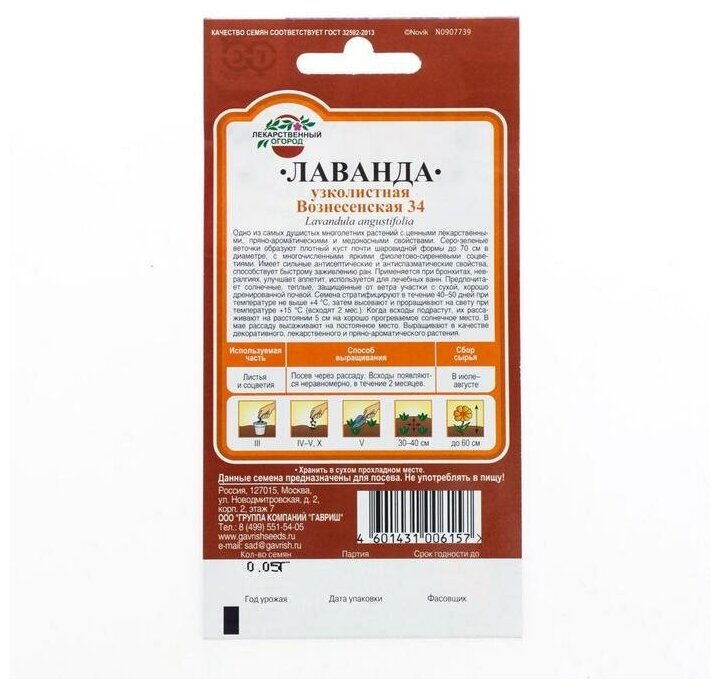 Гавриш Семена Лаванда узколистная, "Вознесенская 34", 0,05 г