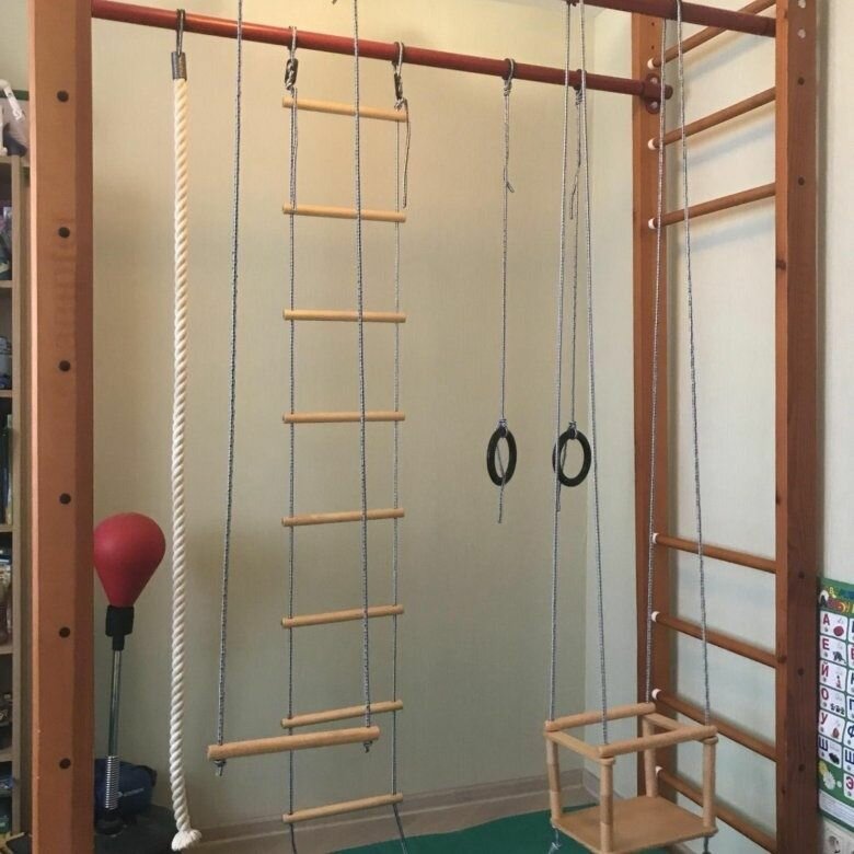 Шведская стенка Kampfer Child Forest макс. нагрузка 120 кг, качели с бортиками, натуральное дерево, канатная лестница №1 Натуральный