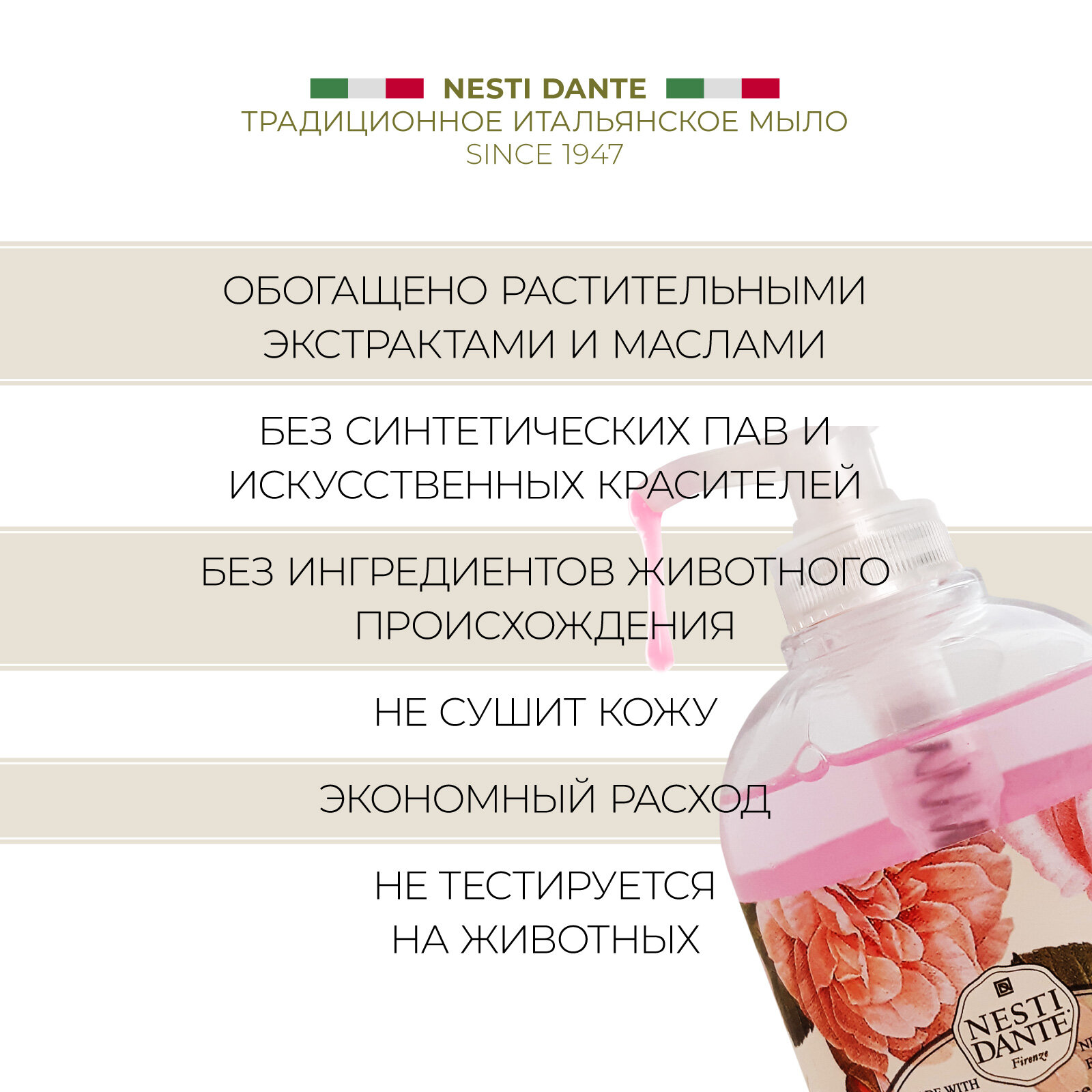 Купить Жидкое Мыло Nesti Dante Флорентийская роза и пион, 500мл
