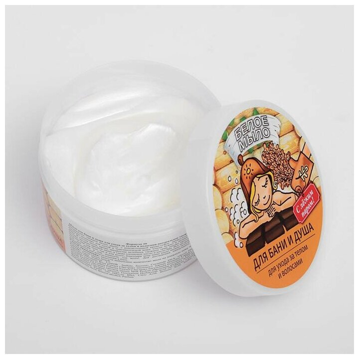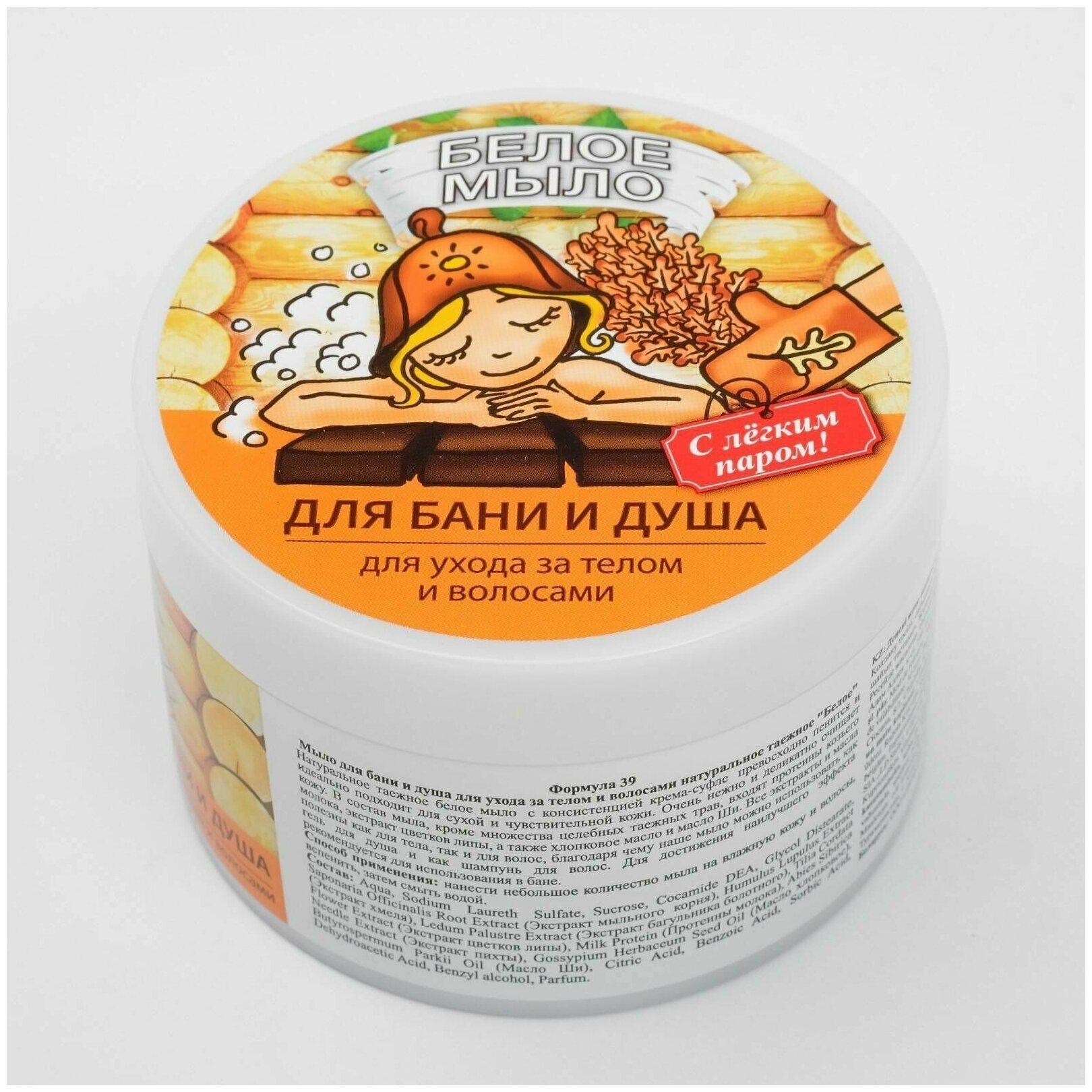 Мыло густое для бани и сауны натуральное таежное "Белое", 450 мл, жидкое для душа, банное для тела и волос