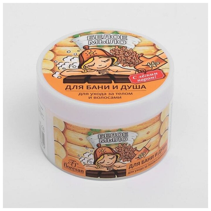 Натуральное таёжное мыло для бани и душа FLORESAN Белое, уход за телом и волосами, 450 мл